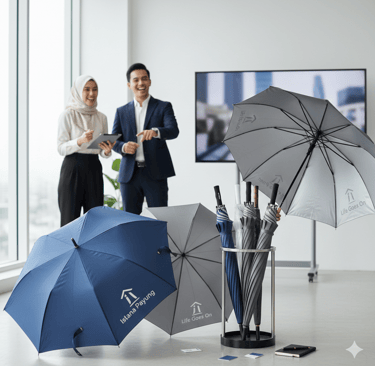 Memilih detail yang tepat pada payung custom memastikan branding perusahaan Anda tampil elegan, fungsional, dan meninggalkan kesan profesional yang tahan lama. Di tengah persaingan acara kantor yang ketat, payung berkualitas adalah diferensiator yang menunjukkan bahwa perusahaan Anda menghargai kualitas, bahkan pada detail sekecil apa pun.